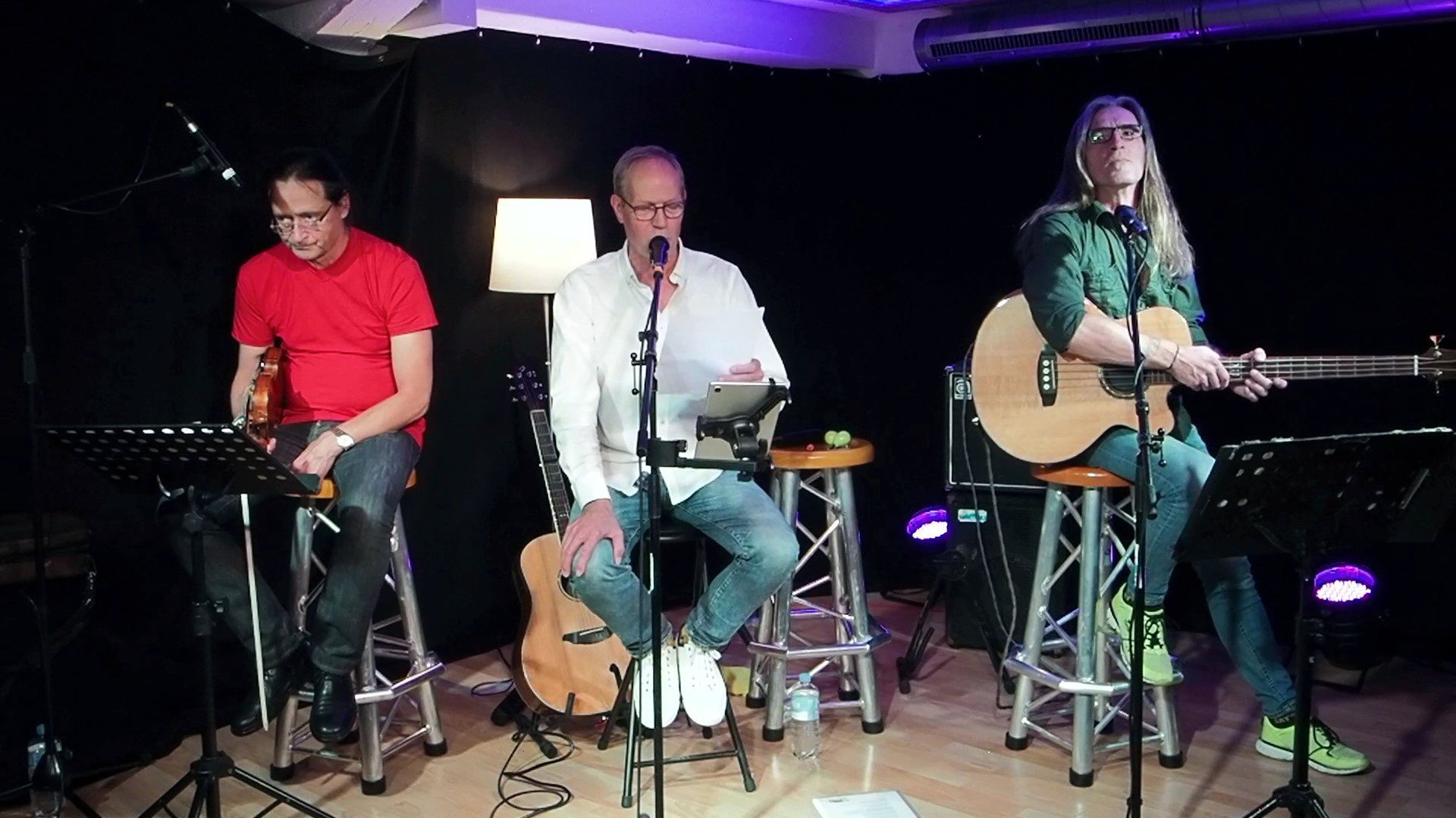 Den Gardinger Kultwirt und Liedermacher Rainer Martens braucht man nicht mehr vorstellen. Den kennt im Land eigentlich jeder, der sich mit Musik befaßt. Mit dabei waren noch der klassisch ausgebildete Violonist Kristofer Vio und am Akustik Bass der in Garding lebende Akustikbasser Stefan Kugler.
